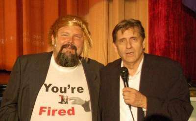 PRESS PHOTOS BY AL RECKERRight: WAEB radio personality Bobby Gunther Walsh introduces Jim Havassy, dressed as a Donald Trump look-alike, during a gathering for the third presidential debate between Trump and Hillary Clinton. The event was held Oct. 19 at the Roxy, Northampton.