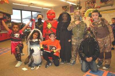 PRESS PHOTOS BY MARK RECCEKSheckler Elementary School second-grade students in teacher Mike Conner's class show off their Halloween costumes prior to participating in the annual Halloween parade Oct. 28 at the school.