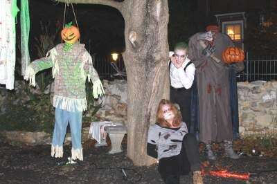 PRESS PHOTOS BY TINAMARIE MARTINLisa Sbanger and Leon Aldag, displayed a horror scene trick-or-treat night Oct. 29 at the home of Michael Smith. They are exchange students from Germany who got into the spirit of the holiday in Catasauqua.