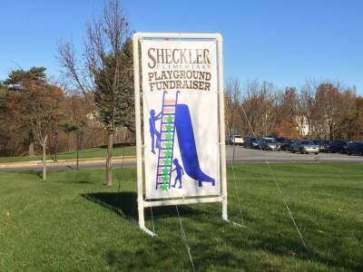 Almost there! Tweet Published November 16. 2016 11:00PM by The Press PRESS PHOTO BY MARK RECCEKA sign posted on the Sheckler Elementary School property shows progress made in raising money to purchase new playground equipment at the school.