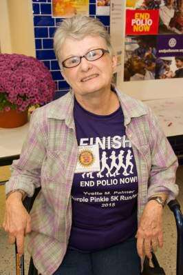 PRESS PHOTOS BY LOU WHEELANDNancy Moffett, 72, of South Whitehall, a polio survivor, benefits from the efforts of the Allentown West Rotary Club's efforts on behalf of polio survivors. She was diagnosed with polio at age 6. She, at times, needs a walker to help her navigate.