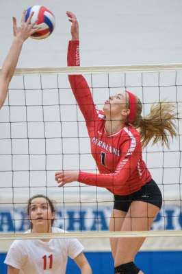 KEEP PLUGGIN’ AWAY ... Parkland’s Sam Graver and Grace Steurer combined for 107 attack attempts during the Trojans’ exciting match with Garnet Valley. However, Garnet’s trio of Sydney Portale, Lizzie Herestofa, and Amber Goldberg covered every single angle and tallied 70 total digs.