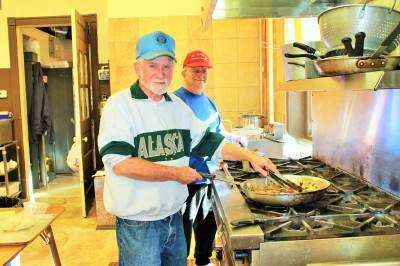 Above: John O'Connell and Pete Germoni, both of Catasauqua, man the kitchen at St. Mary's Catholic Church during an afternoon of bingo Nov. 13. Left: Anna Boruch, of Northampton, is one of the lucky bingo game prize winners. Sue Smith, of Whitehall, confirms the win.PRESS PHOTOS BY TINAMARIE MARTIN