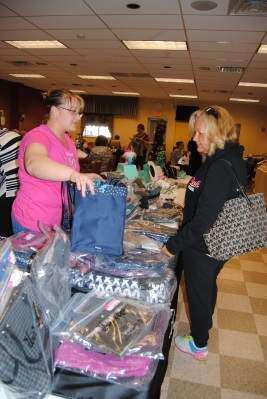 PRESS PHOTOS BY SUSAN BRYANTJamie Gorr of Thirty-One, Mertztown, shows Michelle Duke, of Wescosville, one of her bags Nov. 19 at the Fogelsville Vendor and Craft Fair in the social hall of the Fogelsville Fire Company.