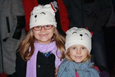 PRESS PHOTOS BY STEPHANIE RAPHUNRight: Darcy and Elsie Conrad anxiously wait at the doors of the Roxy, Main Street, Northampton, for a showing of “The Polar Express” Dec. 7. Admission to the movie was a donation of a canned good for Northampton Area Food Bank.