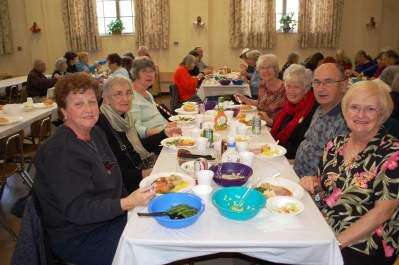 Bottom right: From left, Marge Drunkenmiller, Agnus Horst, Carol Luisser, Ann Dreyman and Elaine O'Conner, all of Catasauqua, and John and Connie Lane, of North Catasauqua, enjoy a holiday meal courtesy of the Lions Club of Catasauqua.PRESS PHOTOS BY MARK RECCEK