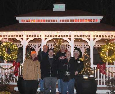 The original goal was to have it ready and lit up for Christmas 2015. There was no electric service. Councilman Mark Molitoris and his brother Dean rigged up a temporary connection to light the gazebo for Christmas 2015.