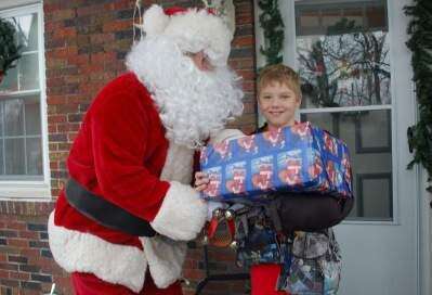 PRESS PHOTO BY AL RECKERHunter Tonnesen gets an early visit from Santa during Northampton Fire Department's annual Santa Run on Saturday. Volunteer firefighters spent the afternoon delivering gifts to borough children.