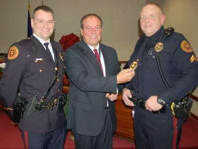 Christopher Longo, Mark C. Nicosia and Nicholas J. Squires were administered their oaths of office as new police department patrol officers. Hozza pinned the badges on the three officers. Police Chief Michael Marks said the three new officers graduated Dec. 1 at the top of their class with Allentown Police Academy.