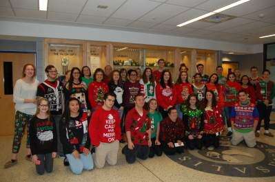 PRESS PHOTOS BY DEBBIE GALBRAITHStudents and staff at Salisbury High School show their school spirit by wearing ugly Christmas sweaters Dec. 23. The top five winners received chocolate and a gift card courtesy of student government.