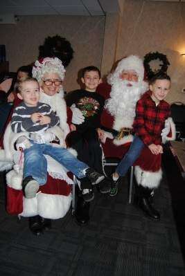 PRESS PHOTOS BY SUSAN BRYANTSanta and Mrs. Claus visit with Evan Winger, of Northampton; Brayden Greene, of Slatington; and Jayden Jones, of Northampton, during a holiday breakfast Dec. 10 at Parkland Restaurant, South Whitehall.
