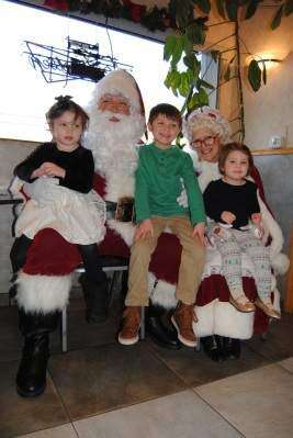 PRESS PHOTO BY SUSAN BRYANTAdylin Griffith, Brady Polzer and Madison Grieco, all of Whitehall, visit with Santa and Mrs. Claus during a breakfast Dec. 10 at Parkland Restaurant, South Whitehall. Helping Mrs. Claus and Santa are Sharon and Drew Wesnak, of Whitehall.