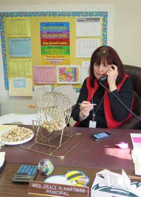 PRESS PHOTOS BY C. RICHARD CHARTRANDWestern Salisbury Elementary School was the site of holiday festivities and celebrations, including a school-wide bingo game and a holiday-themed sing-along, recently. ABOVE: Grace H. Hartman, school principal, calls the bingo game over the school public-address system.
