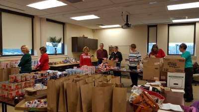 PRESS PHOTOS COURTESY GLORIA ZIMMERMANSharon Naugle, Nancy Zellner, Deb Ginder, Gene Hahn, Helen McCauley, Beverly Kistler, Anna Nestor, and Althea Hahn help fill snack packs Dec. 14 at Northwestern Lehigh High School.