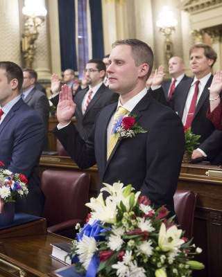 State Rep. Zach Mako, R-183rd, was joined on Jan. 3 in Harrisburg by 22 other first-term legislators as he took the oath of office in the Pennsylvania House of Representatives.