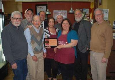 PRESS PHOTO BY AL RECKERSamgat Nonie and Marylyn Yacoub, of Burger Shack, accept the first-ever award from Whitehall Township Environmental Advisory Council for the West Catasauqua business' successful recycling program. Burger Shack, 2011 N. First Ave., uses cardboard containers instead of Styrofoam, recycles its cooking oil, offers a recycling bin for cups and uses an energy-efficient range.