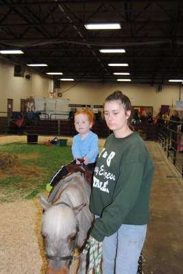 Elijah Fulmer, 2, of Bethlehem, takes a ride on a pony led by a stable hand from K and B Stables, Mohrsville, at the Lehigh Valley Pet Expo. The event on Jan. 29 took place in the Agri-Plex at the Allentown Fairgrounds, Allentown.PRESS PHOTOS BY SUSAN BRYANT