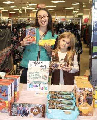 PRESS PHOTOS BY LINDA ROTHROCKAbove: Scouts Charli-Ann Reinert and Cassidy Neidemeyer, both members of Troop 6242, sell cookies inside Boscov's, Lehigh Valley Mall, Feb. 4. Troop 6242 meets at St. John's United Church of Christ, Mickleys.