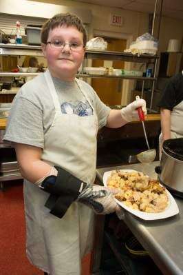 Serving SeimaageUpper Lehigh Lions Club had its annual pig stomach dinner fundraiser Feb. 19 at the Community Fire Co. No. 1, Schnecksville. Volunteer Jacob Kern prepares a platter for an awaiting dinner guest.PRESS PHOTO BY LOU WHEELAND Copyright - Lou Wheeland Photography