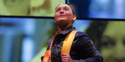 “So, I sort of took a look at all of the stuff I had gathered over the course of this trip, all of the brochures and journal entries and pictures and selfies and thoughts and I was like, ‘What can I put this together into?’ And what I put it together into was about a 10-minute performance that was me going on an audio tour. It was a sort of weird little artsy thing,” Ackerman says.