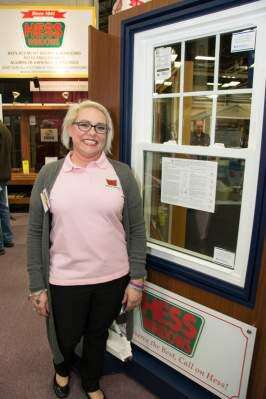 With Hess Windows of South Whitehall celebrating its 71st anniversary, sales representative Lisa Stevens stands next to a display at the Eastern Pennsylvania Home Show March 3-5 at the Allentown Fairground's Agri-Plex. With a full house of vendors, visitors had many choices to make if they were looking to update, refresh or add new features to their homes.PRESS PHOTO BY LOU WHEELAND Copyright - Lou Wheeland Photography