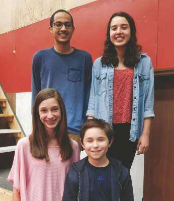 PRESS PHOTO BY ED COURRIERNazareth Area High School's “Mary Poppins” cast includes, from left, front: Abby Ellis (Jane Banks) and Aaron Louw (Michael Banks) and, back, Ysaac Zegeye (Bert) with Marissa Dibilio (Mary Poppins). Copyright - &Copy; Ed Courrier