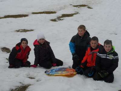 PRESS PHOTOS BY AARON BERGERColton Dencler, Braelyn Dencler, Alex Sands, Cameron Sands and Cayden Dencler, all of Lower Macungie Township, enjoy sled riding and playing in the snow at Camp Olympic Park, Lower Macungie Township, March 18. Copyright - COPYRIGHT, 2010