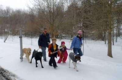ABOVE: Todd, Nicholas, Alexis and Denae Ervin, of Lower Macungie Township, enjoy a family hike in the snow with their dogs Skye, Holly and Tucker at Wildlands Conservancy in Emmaus recently. LEFT: Nicholas Ervin attempts to amuse his sister Alexis Ervin, both of Lower Macungie Township, while playing in the snow.PRESS PHOTOS BY AARON BERGER Copyright - COPYRIGHT, 2010