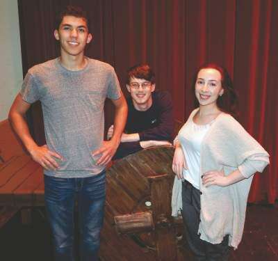 Whitehall High School “Monty Python's Spamalot” cast includes, from left, Carmelo Santiago (King Arthur), Ean McCloud (Patsy) and Taylor DeFranco (Lady of the Lake). Copyright - &Copy; Ed Courrier
