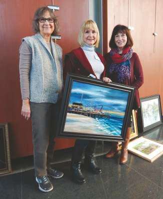 PRESS PHOTO BY ED COURRIERFrom left, Pat Delluva; Diane Hutchinson, Bethlehem Palette Club president, holding “Funtown Pier,” and Louise Arlen Cosgrove at 2016 Bethlehem Palette Club All-Member Exhibit. Award winners included Sandra Corpora, Sue Carnwath, Karen Dyche and Kara Coleman. Honorable mentions were given to Ginny Atwell, Arthur N. Buroff and Deborah Walkowiak. Kristine Kotsch, curator of Copyright - &Copy; Ed Courrier