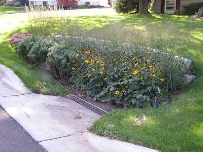A rain garden is a planted depression in an area of lawn or soil that soaks up rainwater runoff from roofs, driveways, walkways and compacted lawn areas. It’s water that would otherwise carry pollutants directly to our streams. Rain gardens soak up 30 percent more water than an equivalent patch of lawn.