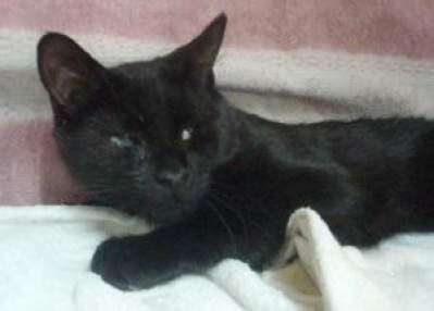 Buford, 9 months, is avery affectionate and playful blind male. He jumps up on the bed and walks around exploring, without bumping into anything. He is neutered, negative for feline leukemia and FIV and is up-to-date on his shots.