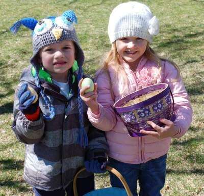 Happy Easter! Tweet Published April 12. 2017 12:00AM by The Press PRESS PHOTO BY AL RECKEROwen Coughlin and Elsie Conrad, both of Northampton, are all smiles after an Easter egg hunt Saturday at American Club of Coplay.