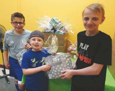Press photo by Ed CourrierOwen Luchansky and his younger brother Zachary Kresge receive Easter gift bags from Wyatt Newhard in the “Ray of Sunshine” room in the Pediatric Cancer Foundation of the Lehigh Valley (PCFLV) offices at the Banana Factory. Recently diagnosed with his fourth relapse, Newhard, a 12-year-old cancer warrior, created 75 Easter bags from donations he collected. The plucky New Copyright - &Copy; Ed Courrier