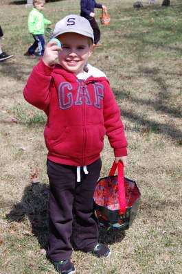 PRESS PHOTOS BY DEBBIE GALBRAITHJerusalem Evangelical Lutheran Church of Eastern Salisbury held an Easter egg hunt April 8 for Sunday School attendees. Over 13 dozen hard boiled, painted eggs were placed in the cemetery for children to find. ABOVE: Landon Stephens is delighted to find an egg to put in his basket.