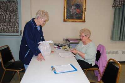 PRESS PHOTOS BY SUSAN BRYANTPeggy Glose of Schnecksville pays Northern Valley Ambulance Ladies Auxiliary member LaRue Guth for her purchase of paska, an authentic Easter Bread, April 14 at the ambulance headquarters in Ormrod. NOVA Ambulance Corps serves Heidelberg Township residents.