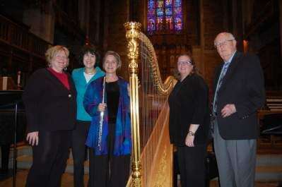 Arts at St. John'sFrom left, Sheila Evans, Executive Director, Allentown Symphony Association; Diane Wittry, Music Director, Conductor, Allentown Symphony Orchestra; Robin Kani, flute; Frances Duffy, harp; Dr. Nelvin Vos, Chair, Arts at St. John's, after “Noon-10 Series” April 18 concert. Next: Allentown Symphony Chorus, Allentown Symphony Brass, Percussion and Organ; Diane Wittry, ASO Music