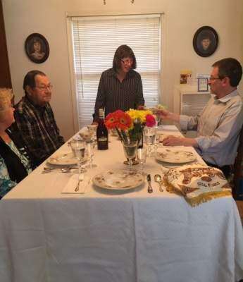 PRESS PHOTOS COURTESY LEANNE HIRSCHMargaret Rosenberger and Syman, Anita and Michael Hirsch, of South Whitehall Township, enjoyed matzo balls and chicken soup, Moroccan chicken, roasted potatoes and carrots and chopped liver at their Passover dinner in April.