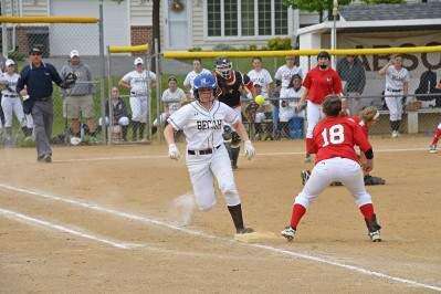Press photo by Rob MerchantNatasha Miner beats out a bunt during a victory over Easton last week. Copyright - Digital Media Magic