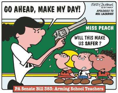 A March 27 letter addressed to the Senate Education Committee written by Deborah Gordon Klehr, executive director and Yvelisse B. Pelotte, staff attorney, both with Education Law Center in Philadelphia, states: “With 41 years of experience working on school climate issues, we write to oppose SB 383, the bill permitting school personnel to carry concealed firearms in schools.