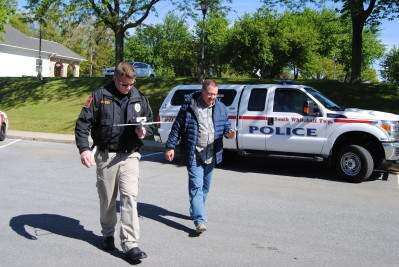 South Whitehall Township patrol officer Jason Grozier learns how to use the PLI 3000 FM receiver during a May 9 training session at the municipal complex. Retired Licking County, Ohio Sheriff Deputy Tim Caldwell, coordinator and national trainer with Project Lifesaver International, assists him.PRESS PHOTOS BY SUSAN BRYANT