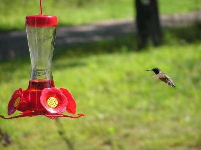 If you go to purchase a hummer feeder, I suggest one with perches at the feeder openings. Hummers hover to take nectar from flowers, but a perch feeder allows them to sit and sip. Plus, it gives you more time to observe them.