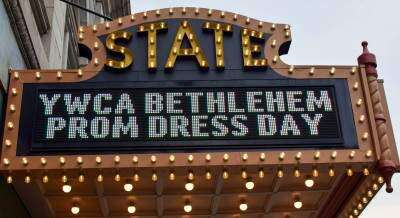 PRESS PHOTOS BY TIM GILMANState Theatre's sign welcomes attendees to the YWCA Bethlehem Prom Dress Day on March 25 in Easton. The historic theatrical sign was lighted all day for the popular event which is hosted by the State Theatre.