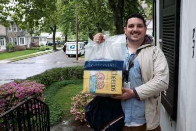 PRESS PHOTO By Dennis GlewMay 13 was the annual Stamp Out Hunger Day when mail carriers collect food items for local food banks. Though a steady rain fell all day, Dan Cardinale, who has only been on the job for a month, was upbeat. βIt is great that the Post Office is doing this,β he said. On his route, #1769, he had already collected between 15 and 20 bags of food.
