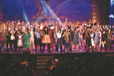 PRESS PHOTOS BY ED COURRIERFour cast members from each area high school don their various costumes to perform at the opening number for the 2017 Freddy Awards at the State Theatre on May 25. Copyright - &Copy; Ed Courrier