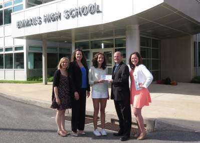 Representatives of the East Penn Chamber of Commerce and the Greater Lehigh Valley Chamber of Commerce recently met at Emmaus High School to present Katrina Durrwachter with a $500 scholarship. RIGHT: Meghan Reed, East Penn Chamber Liaison, Kate Hart-Zayaitz, scholarship chairperson, Tom Capeheart, president of the East Penn Chamber of Commerce and Jessica O'Donnell of The Greater Lehigh Valley Chamber of Commerce, join Katrina Durrwachter, center, for a photo.