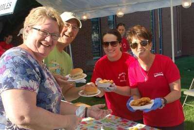 Festival fun! Tweet Published June 14. 2017 12:00AM by The Press Linda and Joe Benko, of Catasauqua, are served potato pancakes Friday at St. Elizabeth of Hungary Roman Catholic Church's parish festival by Peach Bonshak and her daughter Erinn.