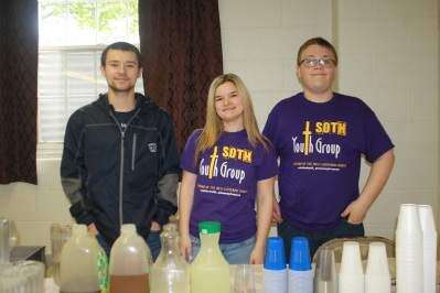 PRESS PHOTOS BY STEPHANIE RAPHUNSiblings Troy and Kayla Belzecky and Ryan Ferenchak volunteer their time at the beverage station during Shepherd of the Hills Lutheran Church's roast beef and mashed potatoes lunch May 7.