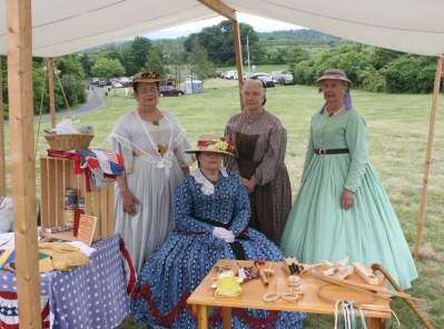 PRESS PHOTOS BY BECCA LUTTERSCHMIDTKathleen Coddington, of Bath; Kay Lingle, of Lancaster; Marianne Pheifer, of Easton; and Miki Krakauer, of Princeton, N.J., portray the women of the U.S. Sanitary Commission during Lehigh Valley Civil War Days, held June 17 and 18 at Whitehall Parkway.