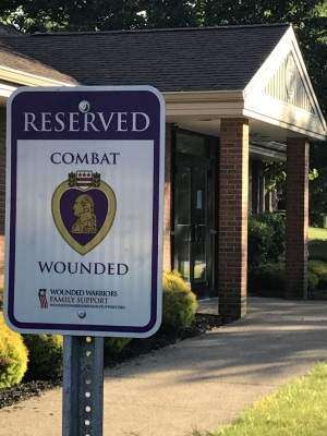 PRESS PHOTO BY BERNIE O'HAREThe choicest parking spot outside Hanover Township's Municipal Building has been reserved for the persons who deserve it most - our wounded warriors. Township Manager Jay Finnigan saw these signs in Colorado and thought them a perfect way to honor those who sacrificed for us. Another sign is at the community center.